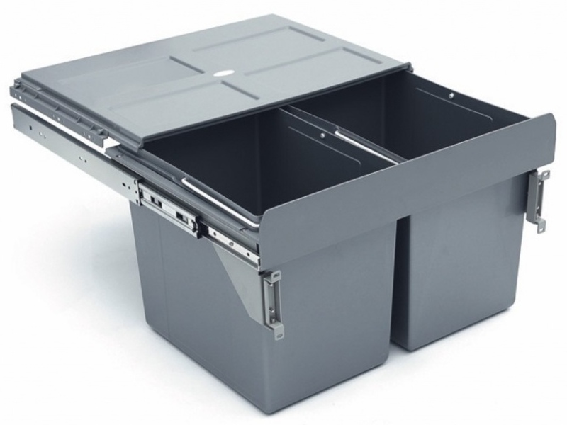 Výsuvný odpadkový 2-koš s úchyty dvířek, 2x15 l, K40-šedý plast