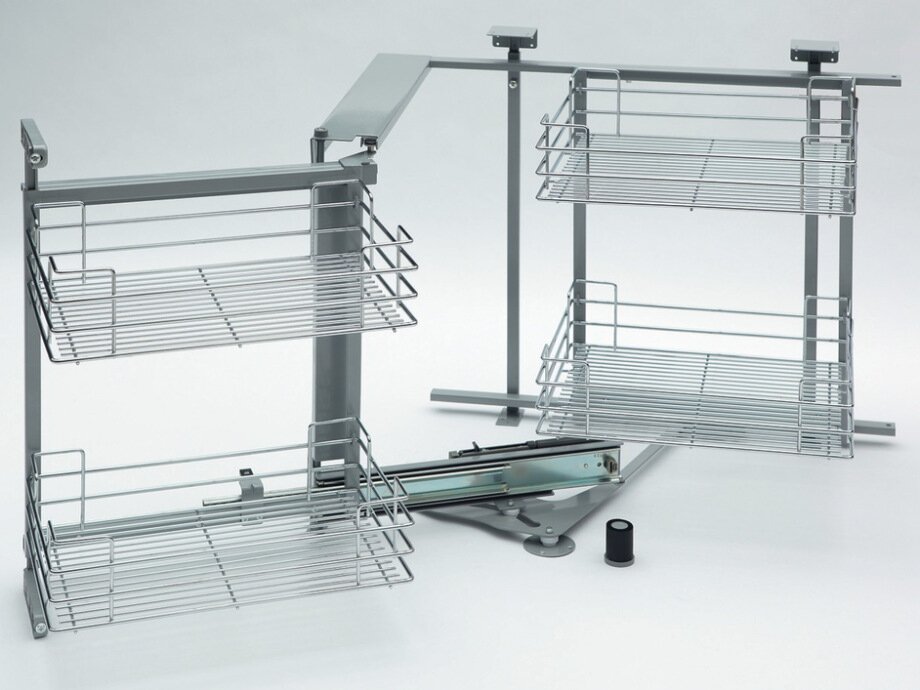 Slepý roh Komfort s tlumeným dovřením - L/P, drátěné koše, 670x460x600 mm, chrom