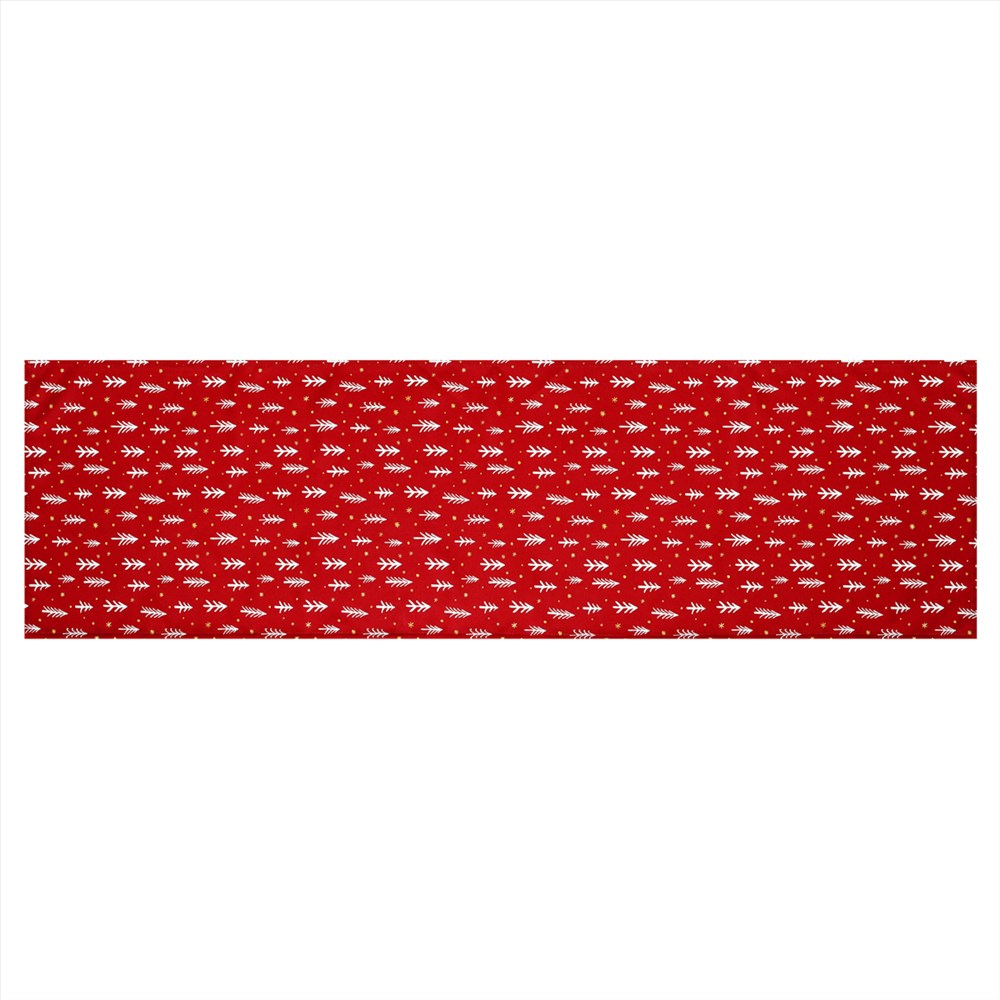 Tento červený vánoční běhoun je vyroben z kvalitního 100% polyesteru a má rozměry 40 x 150 cm. Jeho elegantní design přináší do vašeho interiéru slavnostní a veselou atmosféru vánočních svátků. Červené pozadí zdobí bílé stromečky a zlaté hvězdičky, které vytvářejí efektní a elegantní vzor.