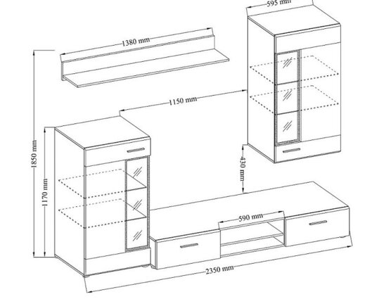 Moderní obývací stěna Tency je v barevném provedení dub sonoma/bílá.
