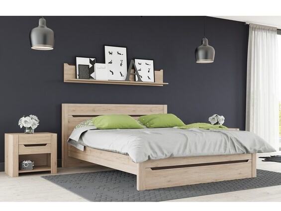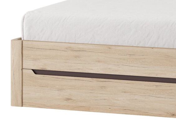 Postel Desjo s šířkou 160 cm je vyrobena v barevném provedení dub san remo. Vysoké čelo zajišťuje rovnoměrnou