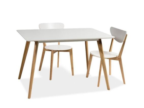 Jídelní stůl Milos je vyroben v kombinaci dvou dekorů dub/bílá. Dřevěná konstrukce z