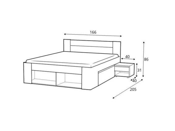 Postel 160 MILO 09 +2 noční stolky, úl. prostor-bez roštu a matrace, dub sonoma 3D/bílá