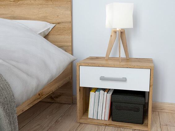Noční stolek Matos KOM1S je možné umístit do každé moderně zařízené ložnice. Díky jejímu neutrálnímu