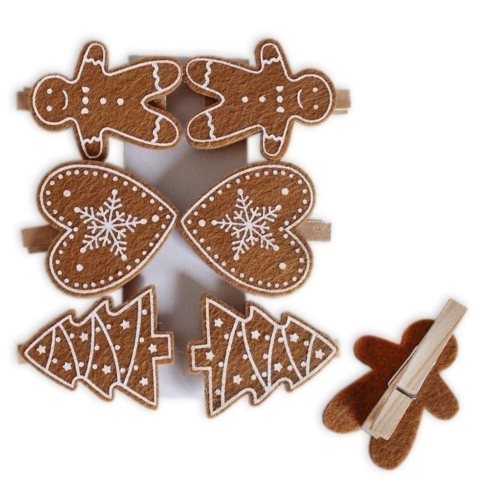 Perníčky kolíček filc/dřevo 6ks/5cm
