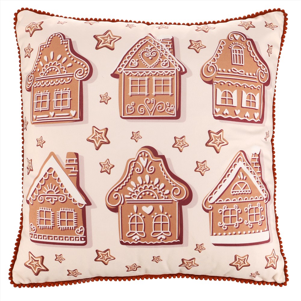 Dekorační vánoční polštář s kouzelným motivem perníkových domků a hvězdiček navodí sváteční atmosféru v každém interiéru. Sametově hebký povrch dodá pocit útulnosti, rozměr 45 × 45 cm je ideální pro pohovku i křeslo. Vyroben ze 100 % polyesteru, příjemný na dotek a snadno udržovatelný. Jen pozor, výplň je nepratelná, ale svrchní část lze sundat, je totiž na zip, a ta již pratelná je.