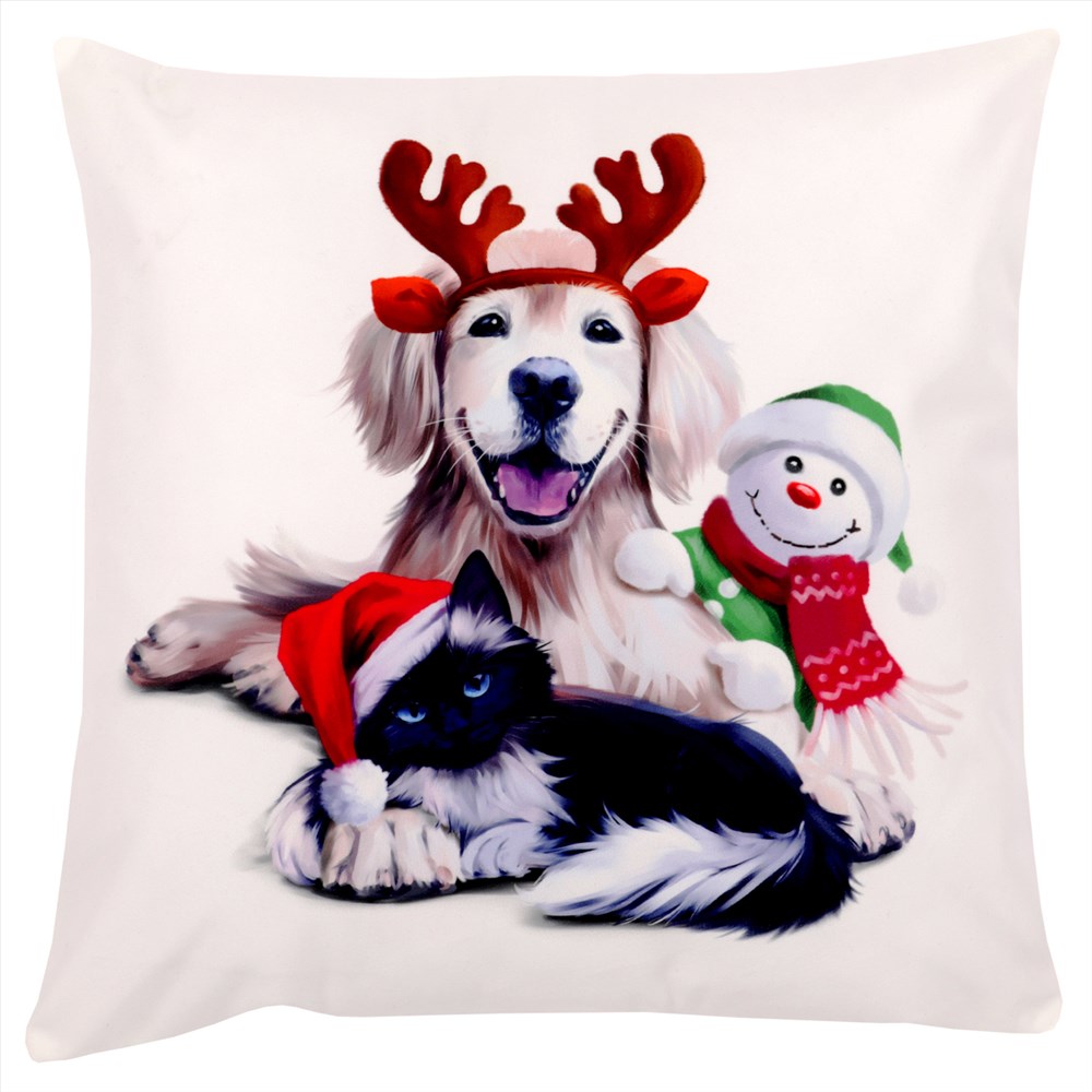 Tento jedinečný dekorační polštář s vánočním motivem o rozměrech 45x45 cm je ideálním prvkem pro vytvoření sváteční atmosféry ve vašem domě. Vyroben z hebkého sametu a opatřen veselým potiskem psa, kočky a sněhuláka, přináší do prostoru radost a útulnost. Polštář je vhodný nejen jako doplněk na sedací soupravy poblíž vánočního stromku, ale také do ložnic a dětských pokojů.