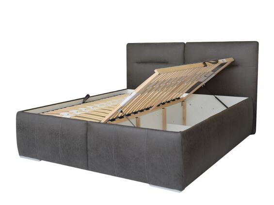 Postel LOUISIANA je čalouněná v grafitovém provedení. Má k dispozici nožky ve stříbrné barvě.