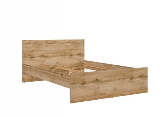 Moderní postel s vysokým čelem Zele o šířce 160 cm v teplém odstínu dubu bude ozdobou všech pokojů a ložnic. K posteli je možné dokoupit šuplík na přikrývky či sezónní věci.