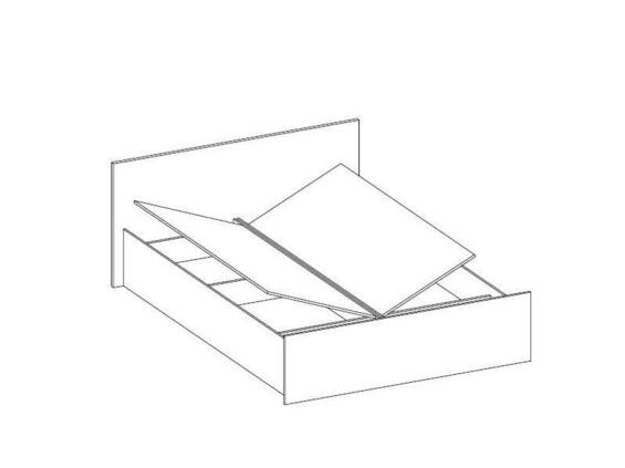 Postel je dodávána bez roštu a matrace (úložný prostor - otvírání boční výklop, místo roštu je plná deska).