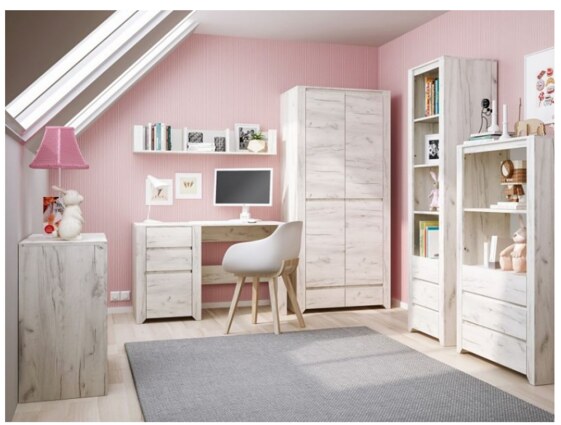 Tato kolekce obsahuje komody, šatní skříně, police, postele, psací stůl, regály a úložné prostory. Skvěle se hodí pro vybavení pokoje kluka či holčičky, studenta nebo studentky.