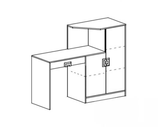 K dispozici má prostornou pracovní desku pod kterou se nachází zásuvka, za dvířky jsou umístěny police.