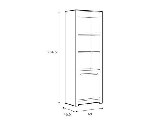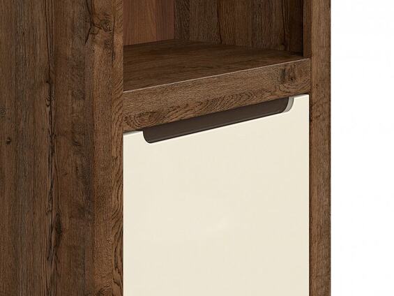 Regál Ruso je vyroben v barevném provedení Dub April/Perleťový lesk. Police v regálu nepřetěžujte.