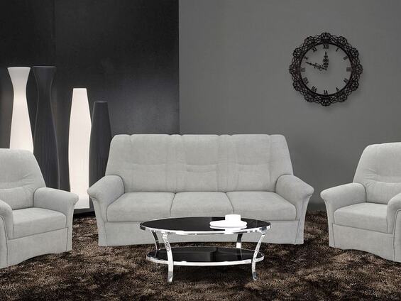 Komfortní klasická sedací souprava Amarila 3+1+1 se skládá z pohovky a 2 křesel. Je vyrobená v šedo/bílém