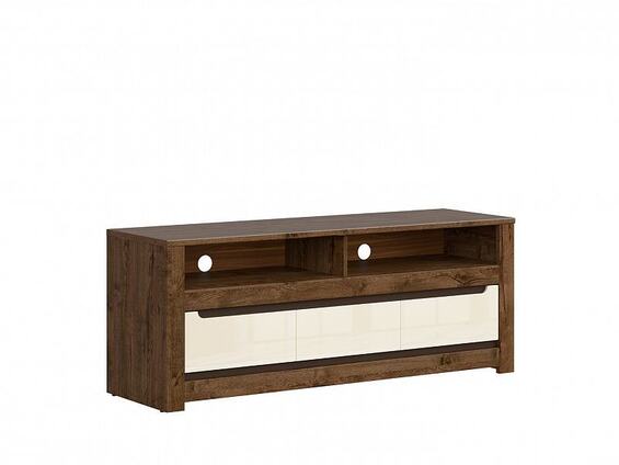 Televizní stolek Ruso je vyrobený v barevném provedení dub april/perleťový lesk.