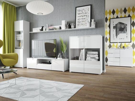 Televizní stolek Samoa 9 je vyroben v barevném provedení bílý mat/bílý lesk.
