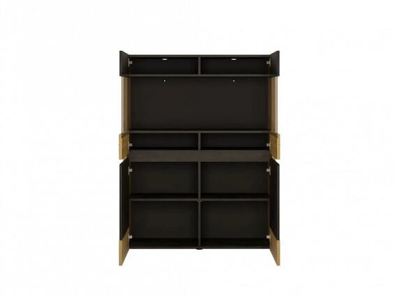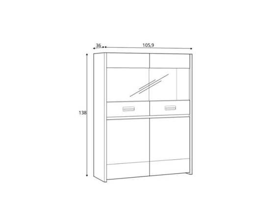 Vitrína Asinara vám pomůže s uspořádáním prostoru ve vašem obývacím pokoji a současně přidá módní design a vytvoří jedinečnou atmosféru. Prostorná čtyřdveřová vitrína se skládá ze dvou skleněných dvířek a dvou celých dvířek, za nimiž je police oddělená svislou přepážkou.