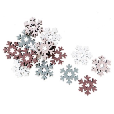 Vločky přízdoba dřevo 36ks/2cm růžový mix