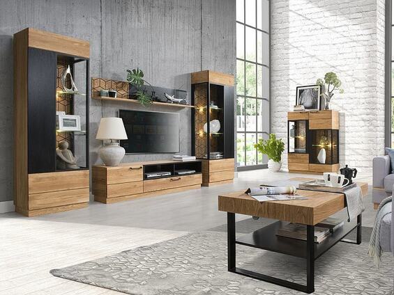 Materiál je ošetřen olejem v barevném provedení dub medový a část je pokrytá černým matným lakem.