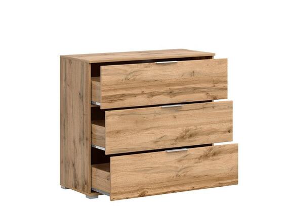 Barevné provedení komody ZELE je v přírodním tónu dub wotan, který na vás dýchne teplou atmosféru. Materiál - lamino, ze kterého je komoda vyrobena se snadno udržuje.